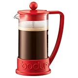 #7: Bodum 10948-294 Brasil - Cafetera de pistón (3 tazas, 0,35 l), color rojo