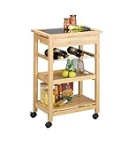 #4: Zeller 13778 - Carrito para cocina con repisa de cristal, madera de bambú (58 x 40 x 85 cm)