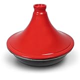 #5: San Ignacio 16658240 - Tajine, 24 cm, tapa refractaria, base de acero esmaltado antiadherente, apta para todo tipo de fuego, para asar y servir, color rojo y negro