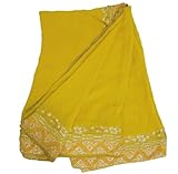#1: ocre amarillo de la vendimia sari georgette tela bordada arte de la decoración india mujeres abrigo vestido reciclado artesanal tela de la cortina cortina