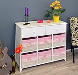 #2: Cómoda Armario 'Dennis' en blanco Aparador con dos cajones y seis Cestas, funda en blanco y rosado