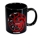 #6: Game of Thrones - Taza de desayuno con el lema Targaryen "Fuego y Sangre" (en inglés, cerámica), color negro y rojo