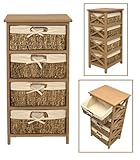 #8: Cómoda estilo rústico, para baño, pasillo, Estantería Aparador en estilo antiguo, de color marrón, con 4 cestas en ratán