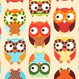 #8: Tela color crema franela animales búhos Timeless Treasures