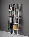 #9: Estantería moderna escalera de madera con cuatro plantas, de pie estante, estante pared, 33x180cm, Color: Bianco, FRG15-W